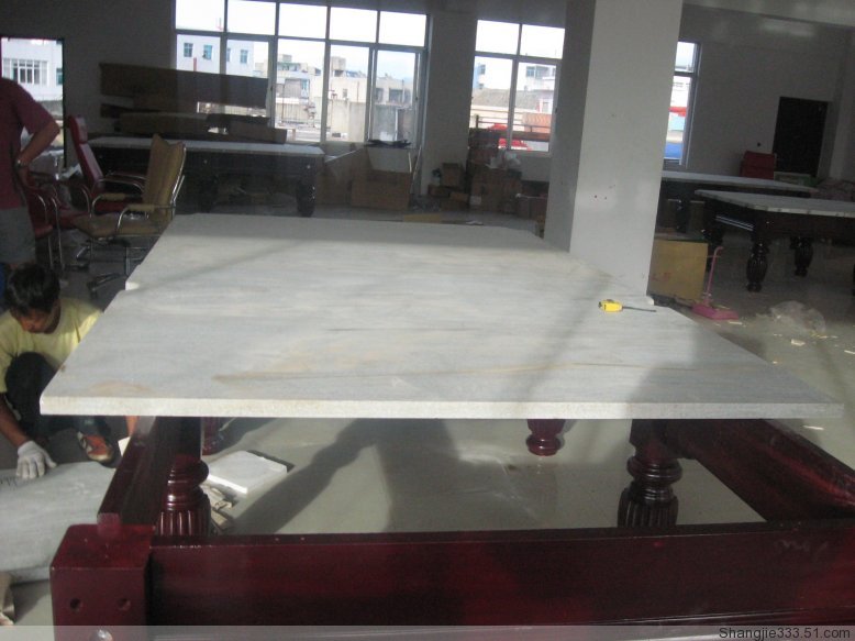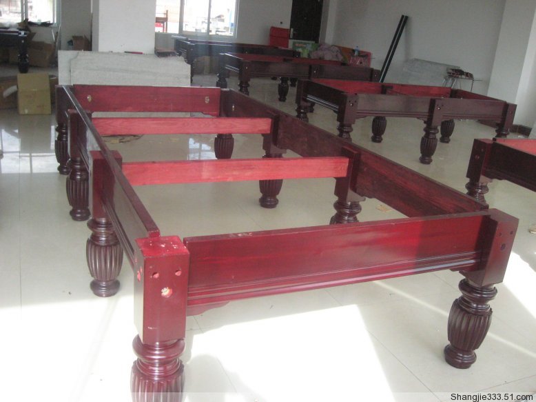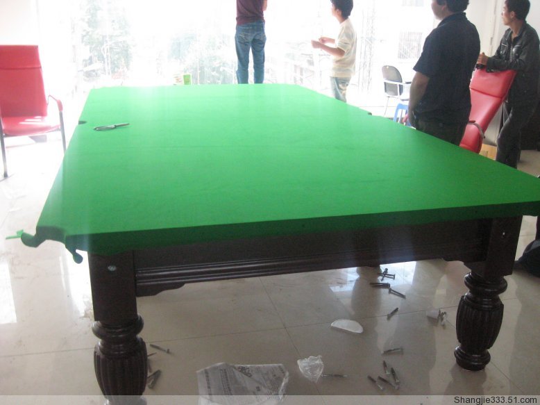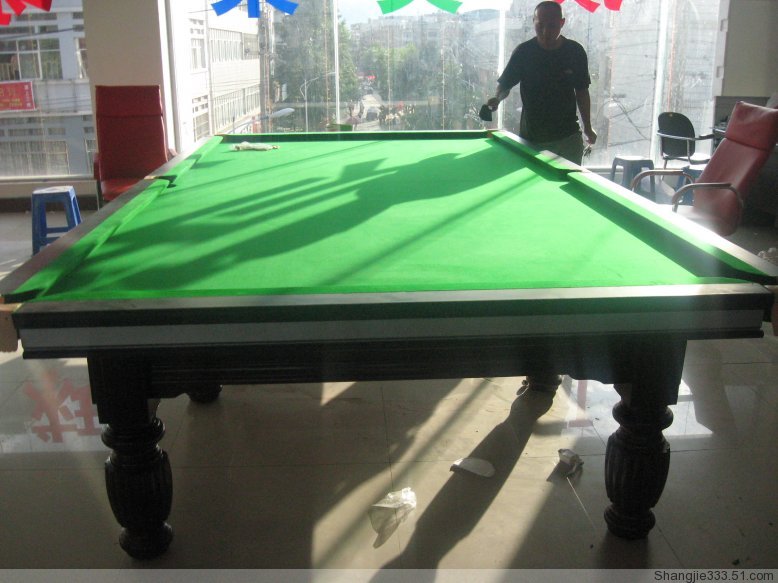 配置說明:高檔黃花松實(shí)木案幫,高密度傳統(tǒng)六腿臺腳,江西青石板、仿6811臺尼、進(jìn)口幽靈膠邊,一副球、兩支美式打桿,一支架桿,殼粉12粒,一個記分器。